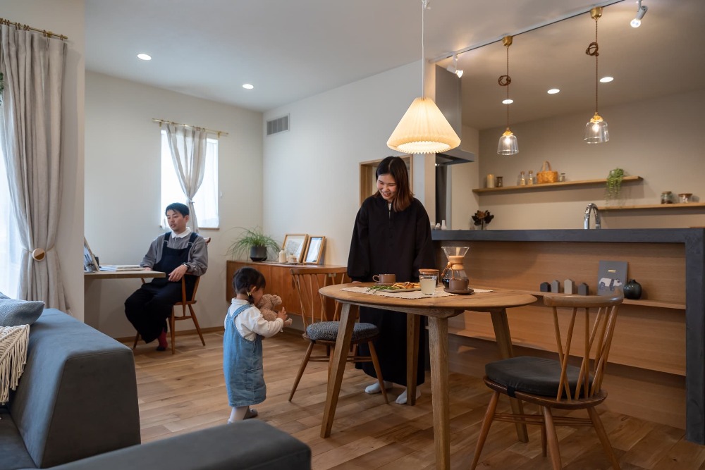 いよいよ完成したおうちでご家族そろっての撮影会♪おこさまたちも大活躍しながら素敵な写真をたくさんとっていただくことが出来ました^^まるで長年暮らしているかのようにご家族の様子が馴染んでいますね。これからひと月完成見学会としてお住まいをお借りして、その後お引渡しとなります。